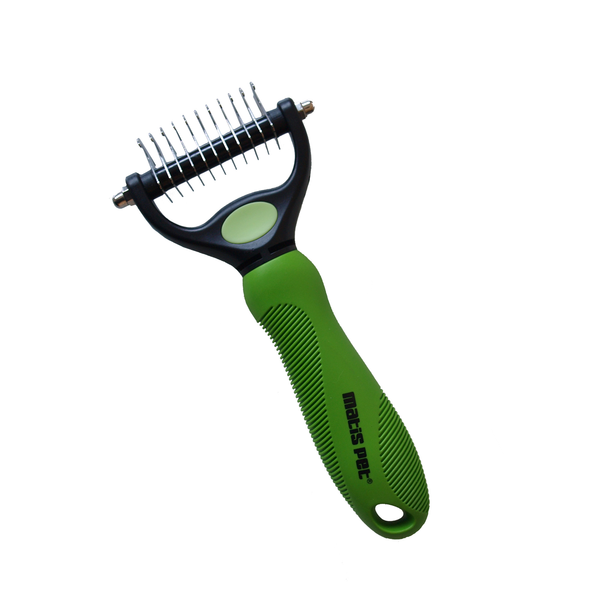 A specially designed comb for double coat, long-haired dogs and cats, an excellent choice for fur care. The stainless steel rounded teeth remove the undercoat and dead fur. Soft non-slip anatomical handle gives excellent control when brushing.Brushing your pet's fur is one of the most important steps in grooming process.
